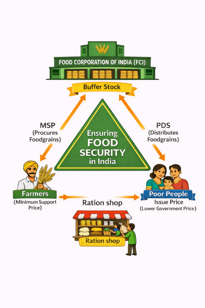 - Impact: It stabilized prices, ensured food availability, and supported farmers.