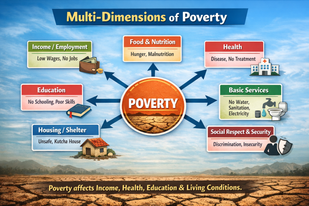 - Since poverty is not only lack of income but also lack of many basic needs, therefore poverty is called a multi-dimensional problem.