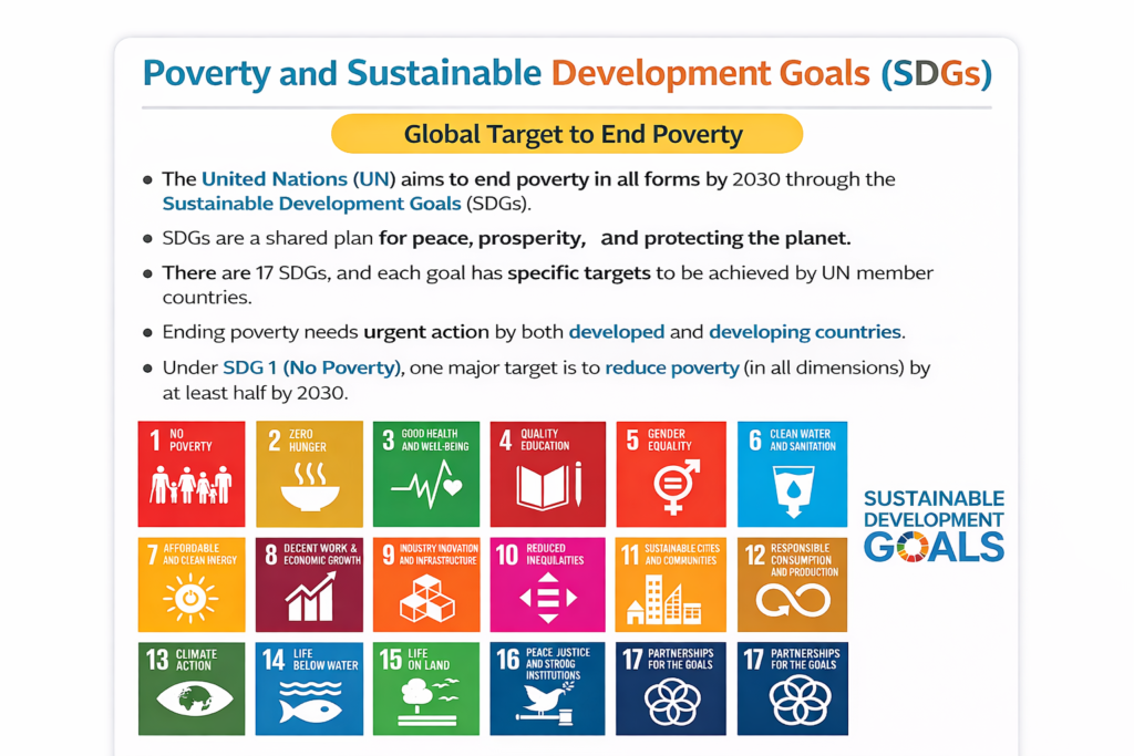 - The United Nations (UN) aims to end poverty in all forms by 2030 through the Sustainable Development Goals (SDGs).